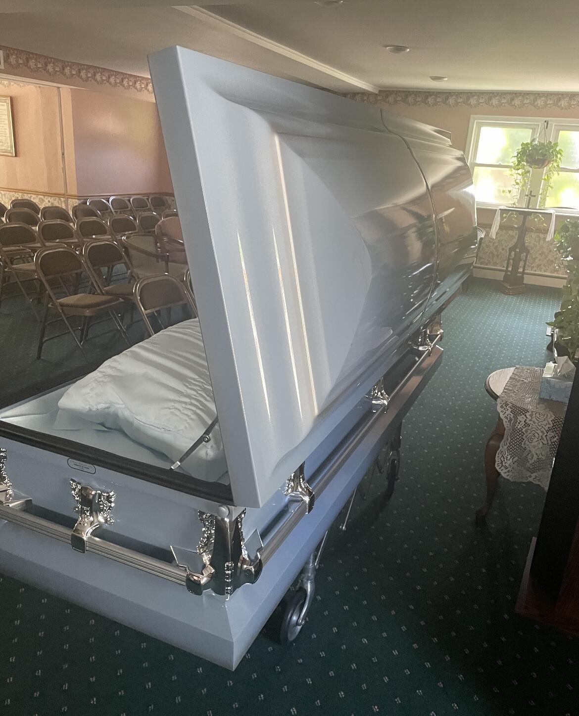 The most beautiful light blue casket I have ever seen... great communication via texts , calls we are extremely pleased... not over joyed that i had to call such a company but I’m really glad I did. Thank you again so much.