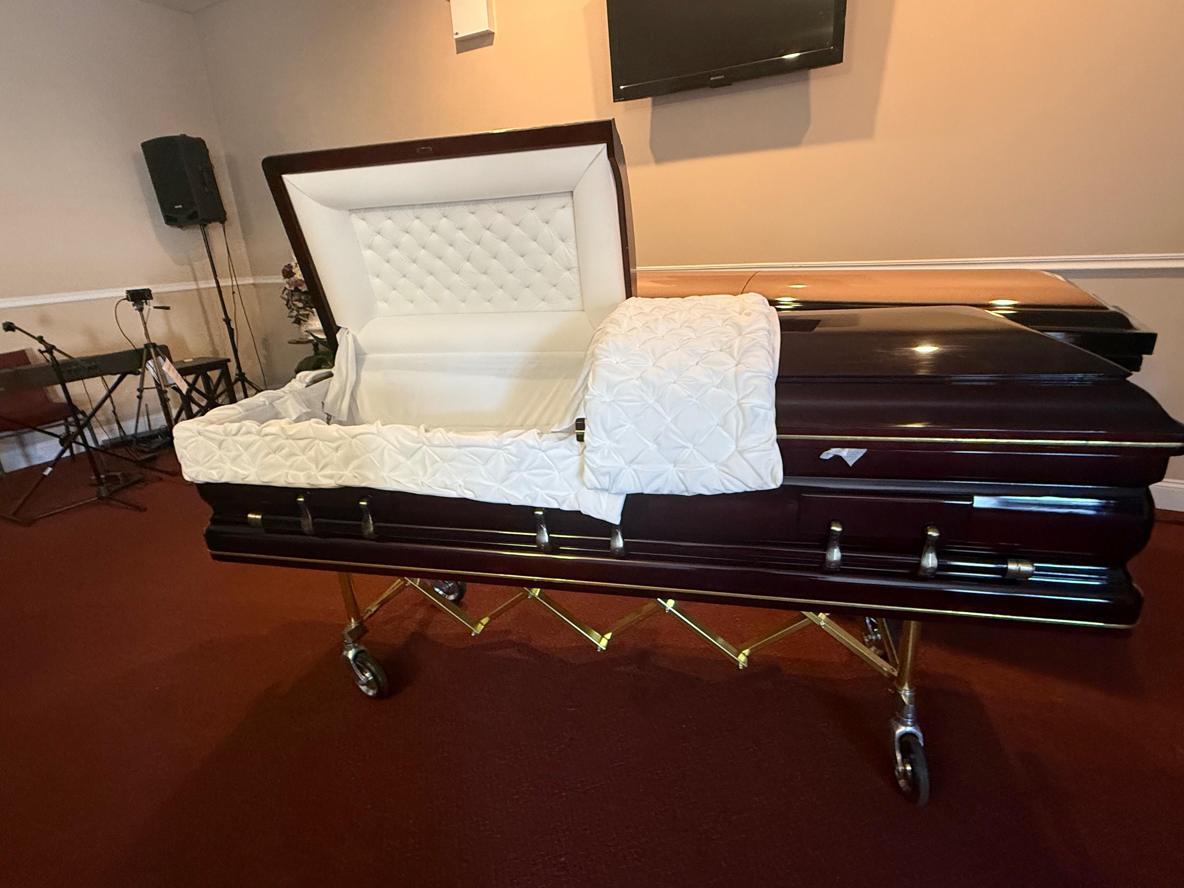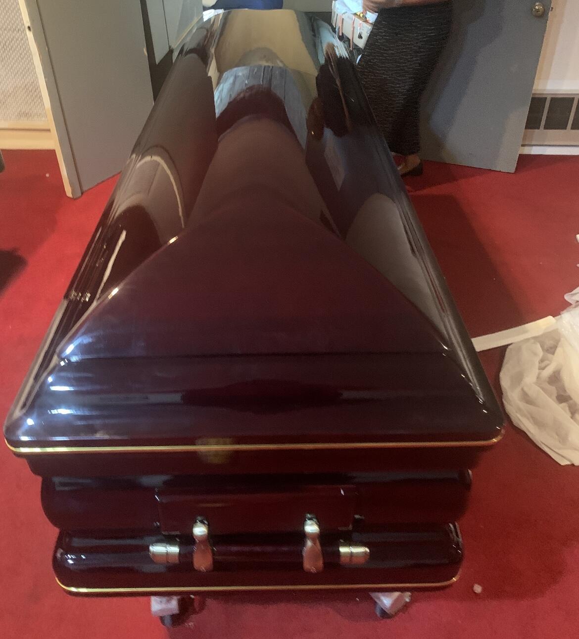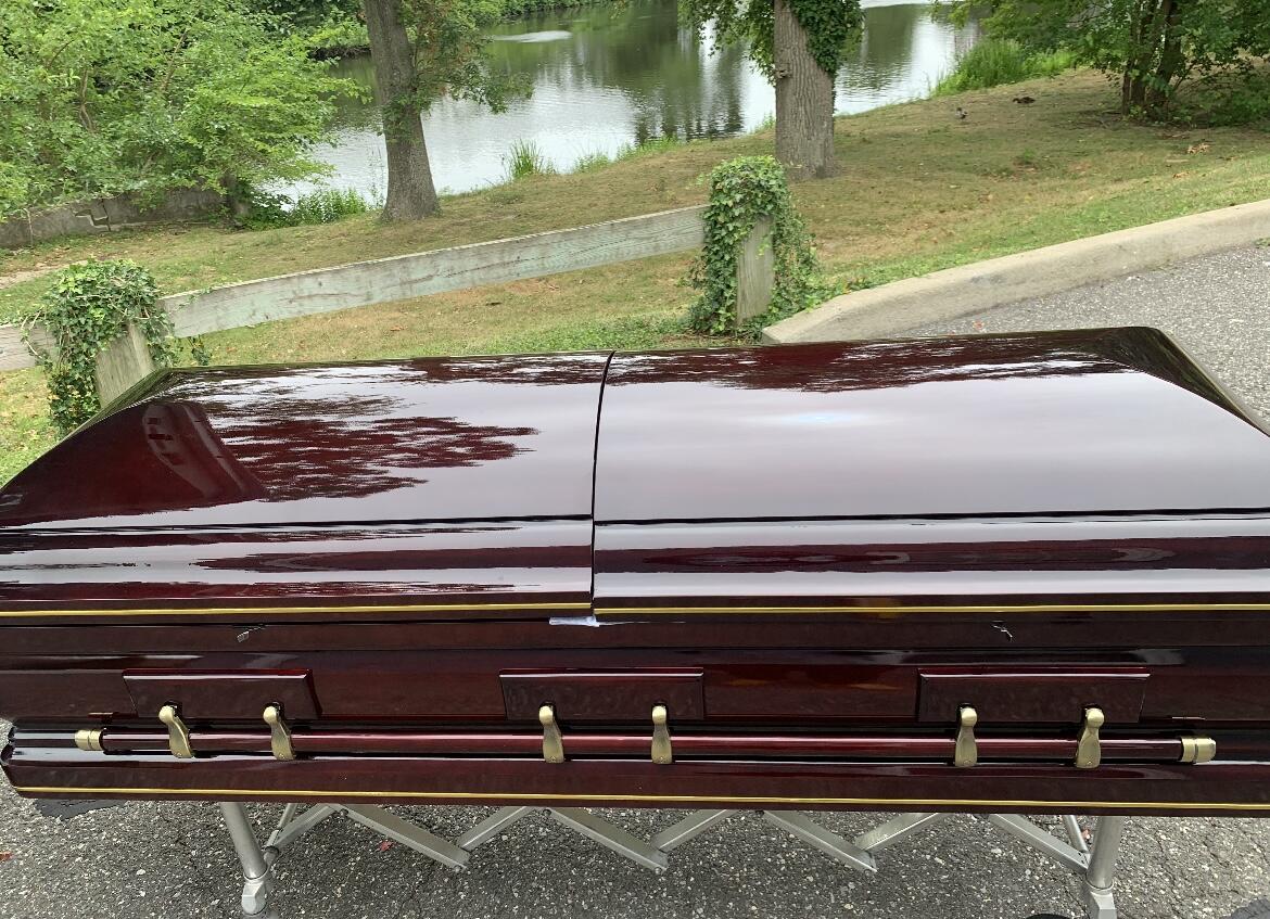 any marks and a day earlier than anticipated. Just a perfect wood casket for my Mom.