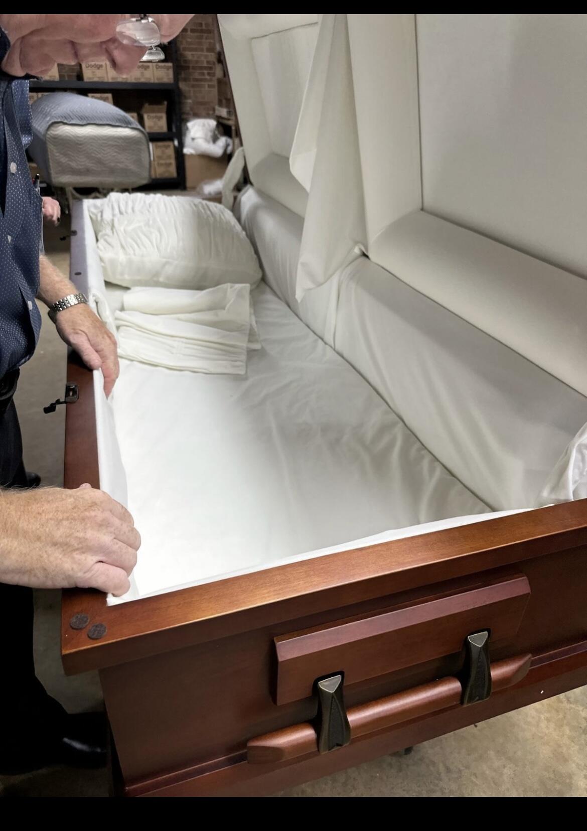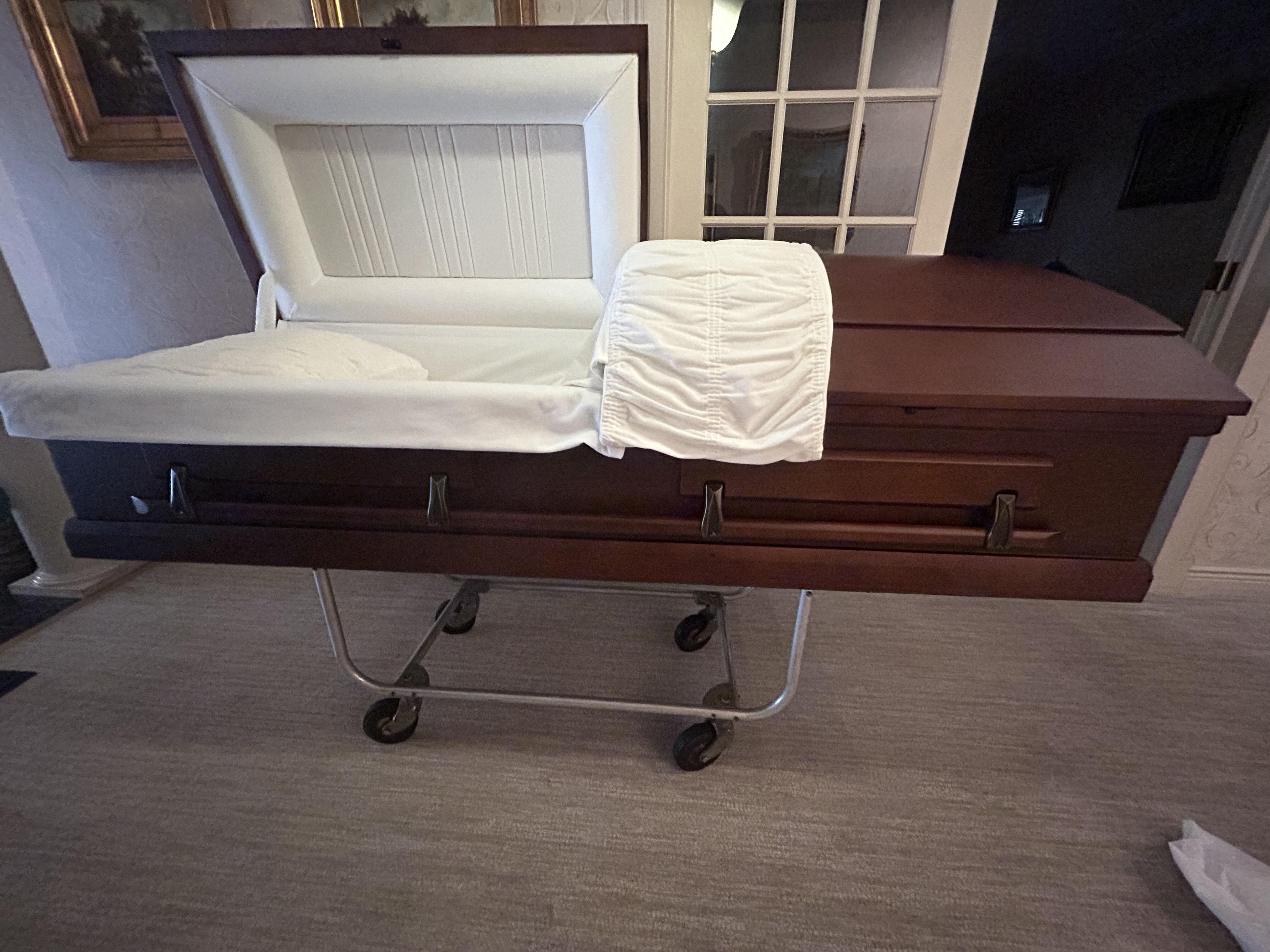 We felt disgusted with the funeral home rental casket. We found a great alternate here and was less in cost and my father was able to have his own casket. Thank you Casket Emporium.,