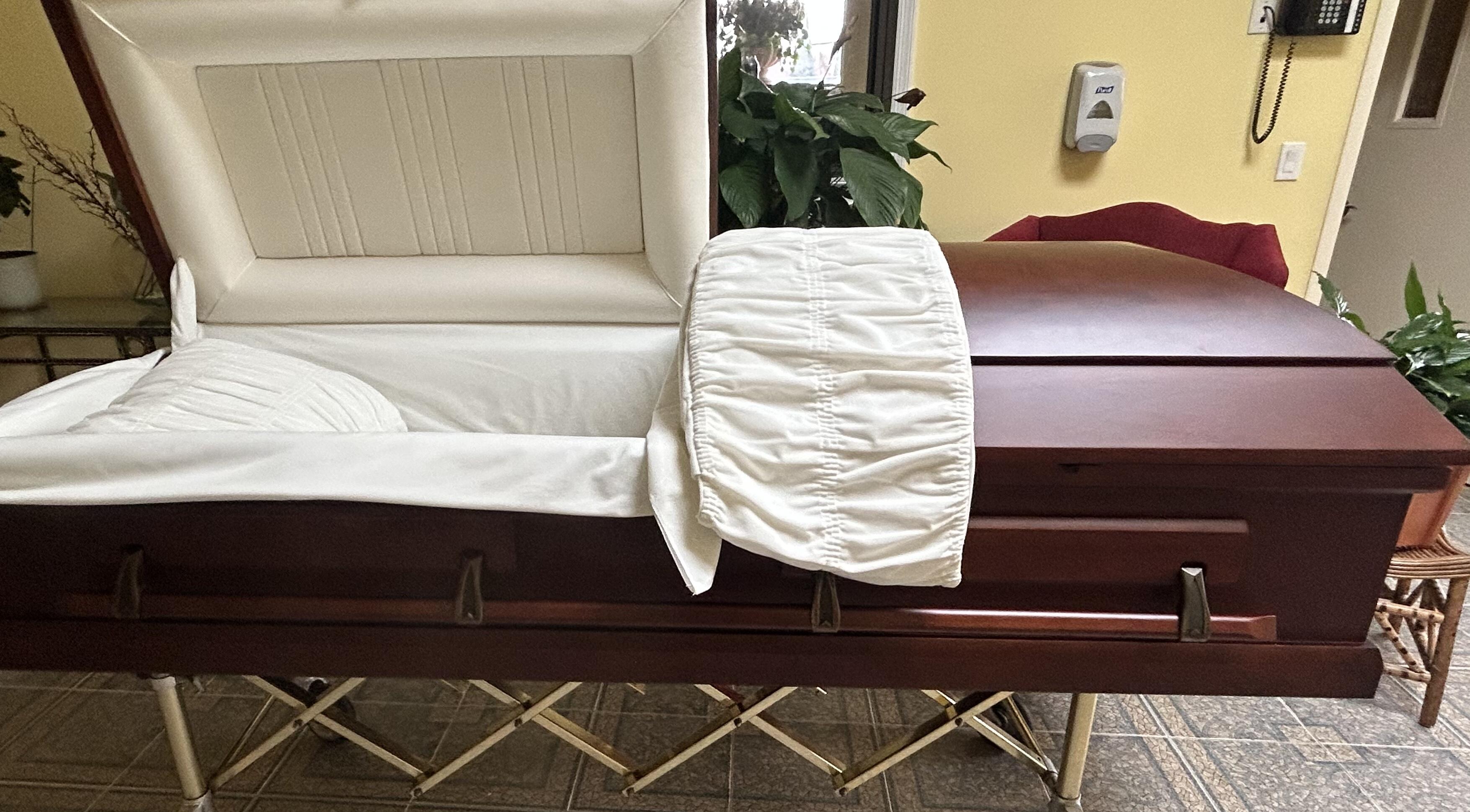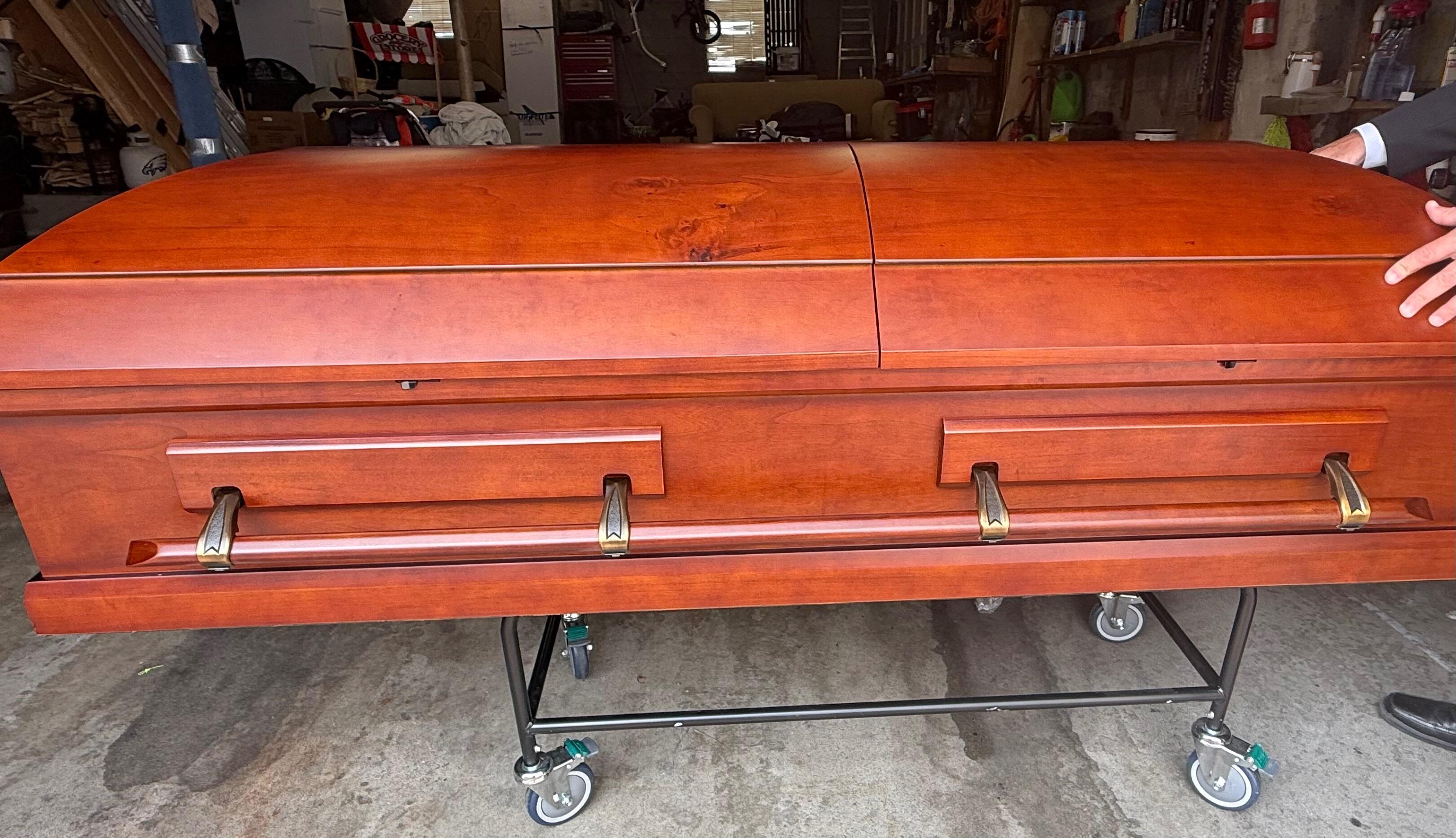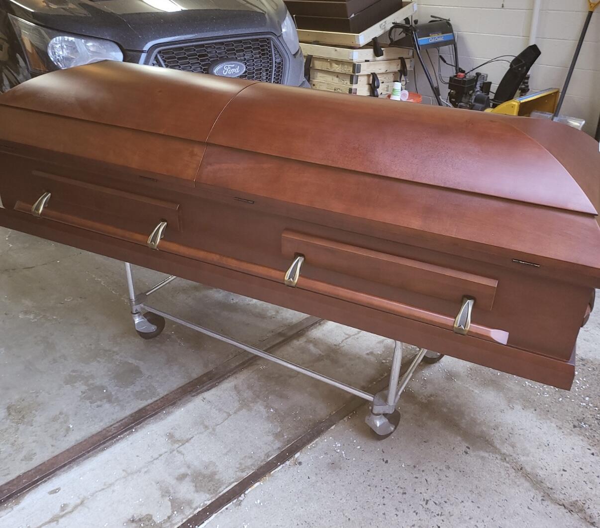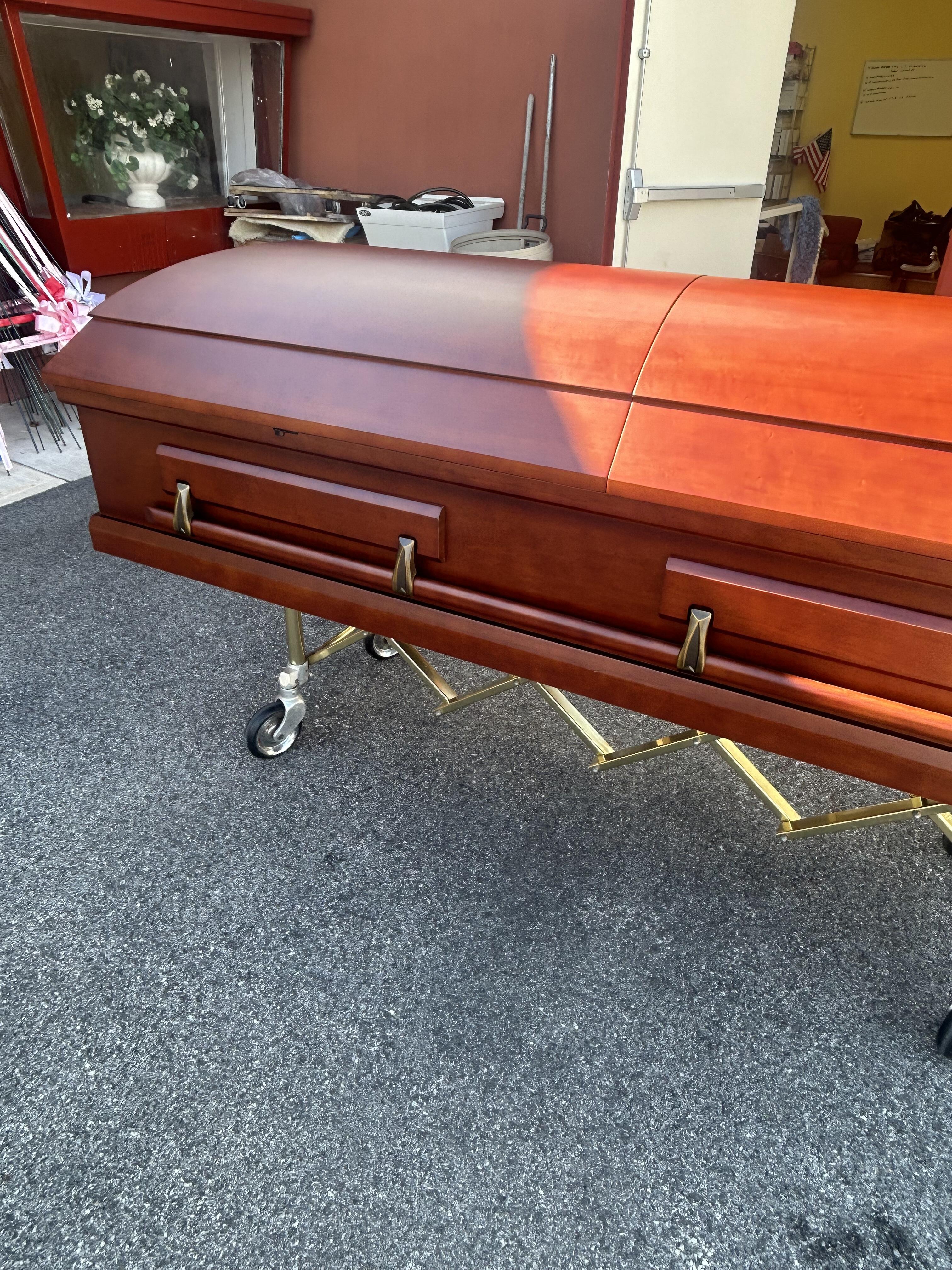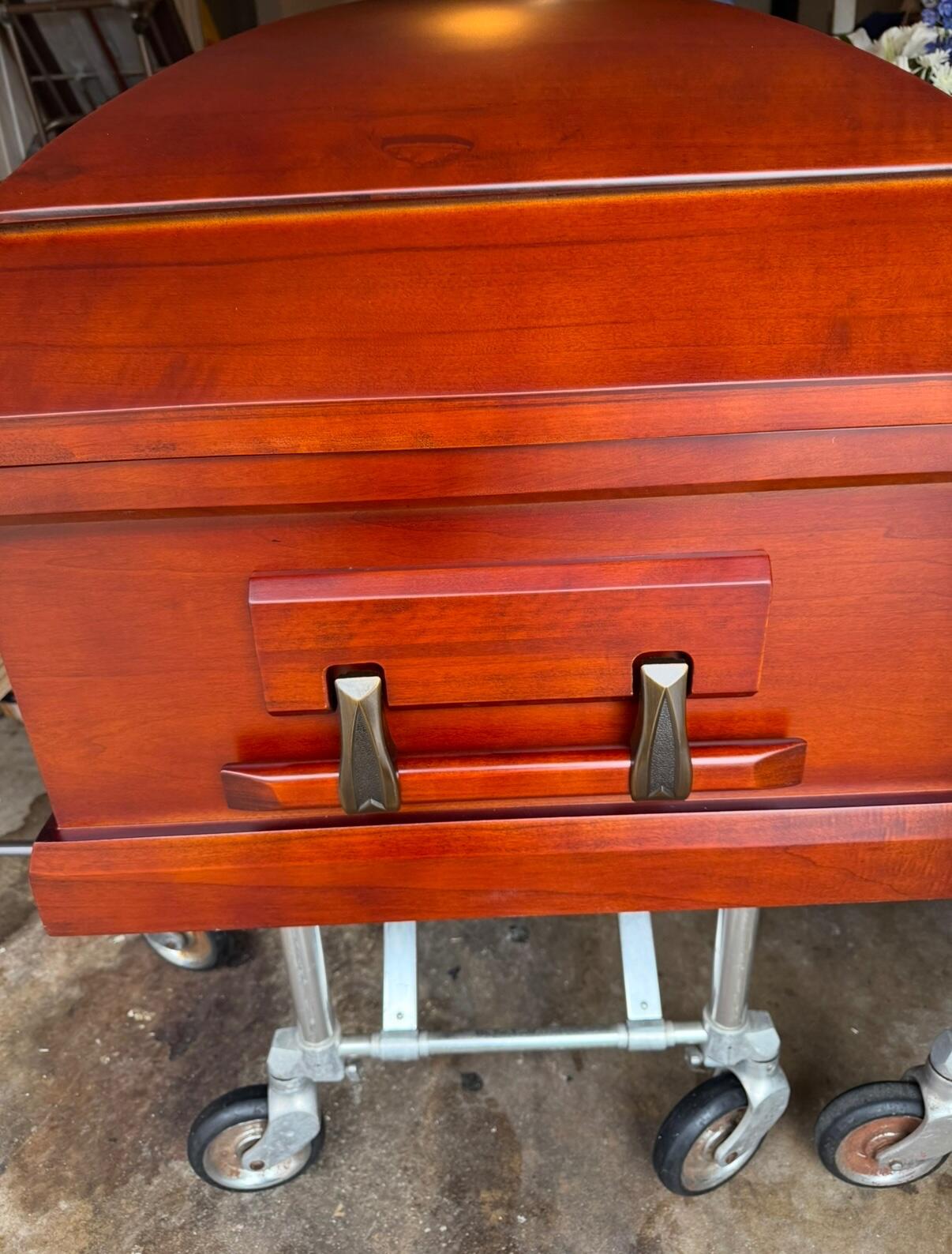 This was a beautiful cherry casket and it was perfect for cremation. We were able to have a nice visitation service with this casket. What else was great working here, the casket was delivered personally by the owner and not some common carrier, like every other company. We felt that was very important to us. Thank you for everything.