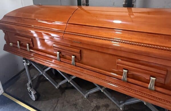Casket was delivered on a Sunday, nobody else could do that and with no damages. This was an Excellent quality casket.